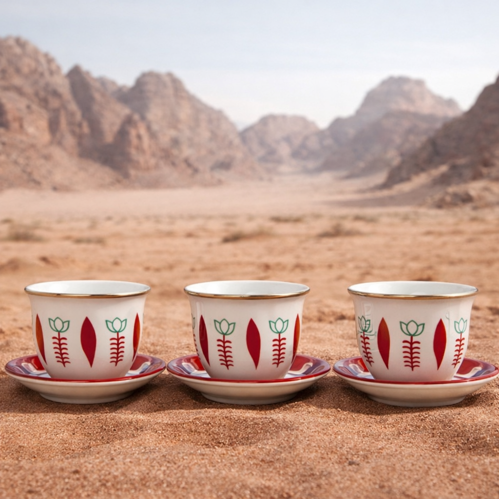 «فنجانهای سرامیکی طرح گل قرمز با الهام از نقوش اصیل شرقی و ترکیب رنگی هماهنگ، انتخابی شایسته برای دوستداران زیبایی و کیفیت هستند.