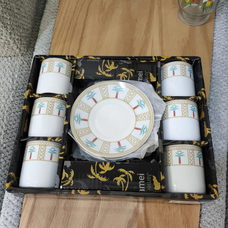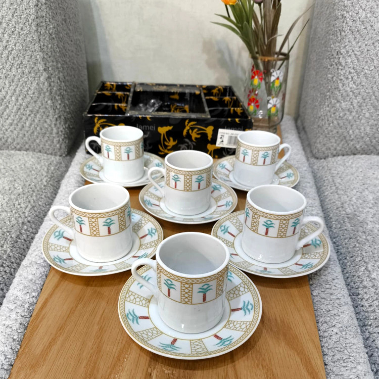 ست فنجان دستهدار و نعلبکی طرح نخل – ۶ عدد