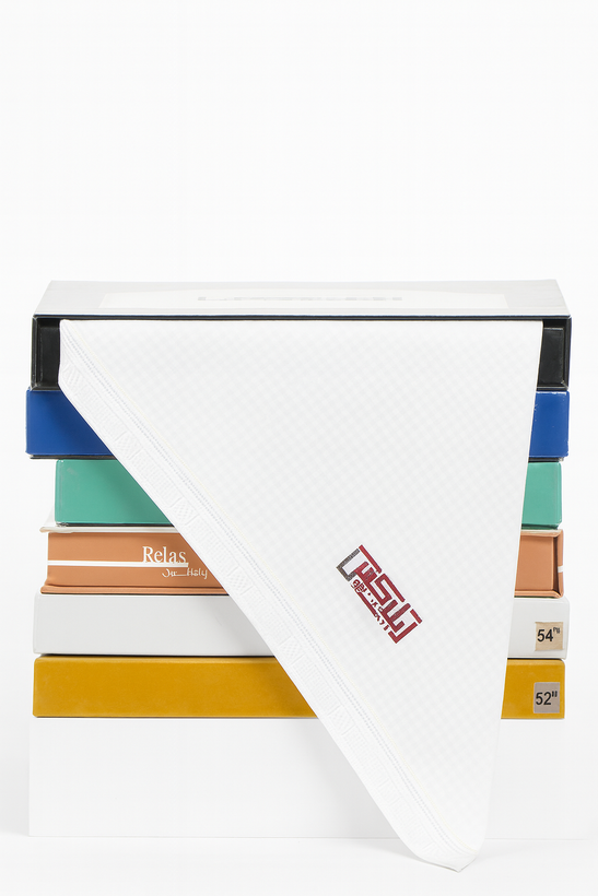 چفیه سفید با بافت ظریف و کیفیت بالا، مناسب استایل رسمی و روزمره مردانه.