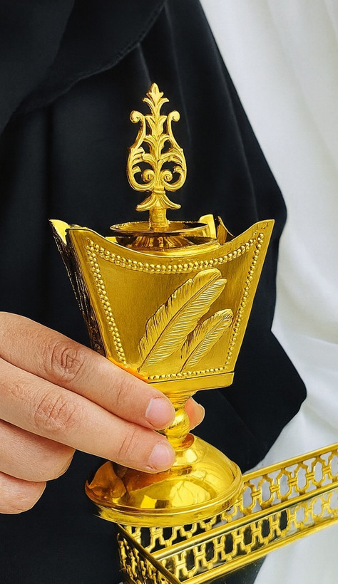 درخشش رنگ طلایی در کنار دود لطیف بخور، فضایی گرم، اصیل و مجلل میسازد؛ درست مثل خانههای عربی لوکس و دلنشین.
