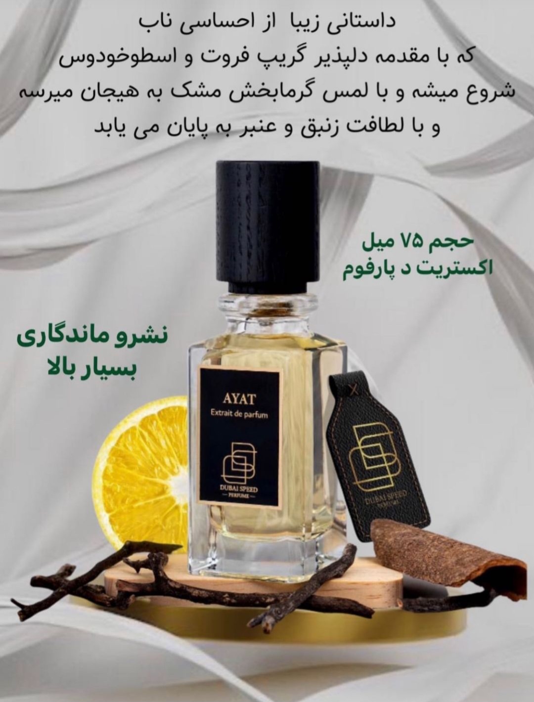 ادکلن آیات عطری گرم و شیرین با لطافتی دلنشین است. ترکیب مشک گرم و اسطوخودوس، موجی از آرامش و جذابیت ایجاد میکند. رایحهای ملایم و در عین حال ماندگار که بیش از یک روز همراه شما میماند. پخش و خط بوی عالی آن، حضوری شیک و متفاوت برای شما رقم میزند.